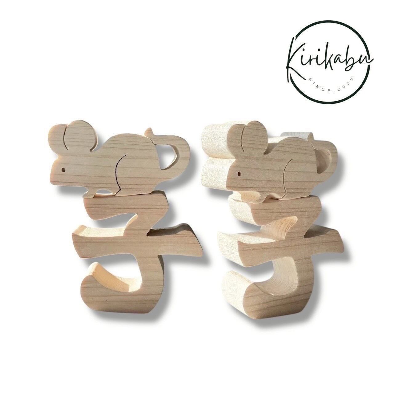 文字と動物を横に並べて飾っても良し、組み合わせて飾っても良し、自分なりに形を変えて楽しむことが出来るのが組み木の面白さです。