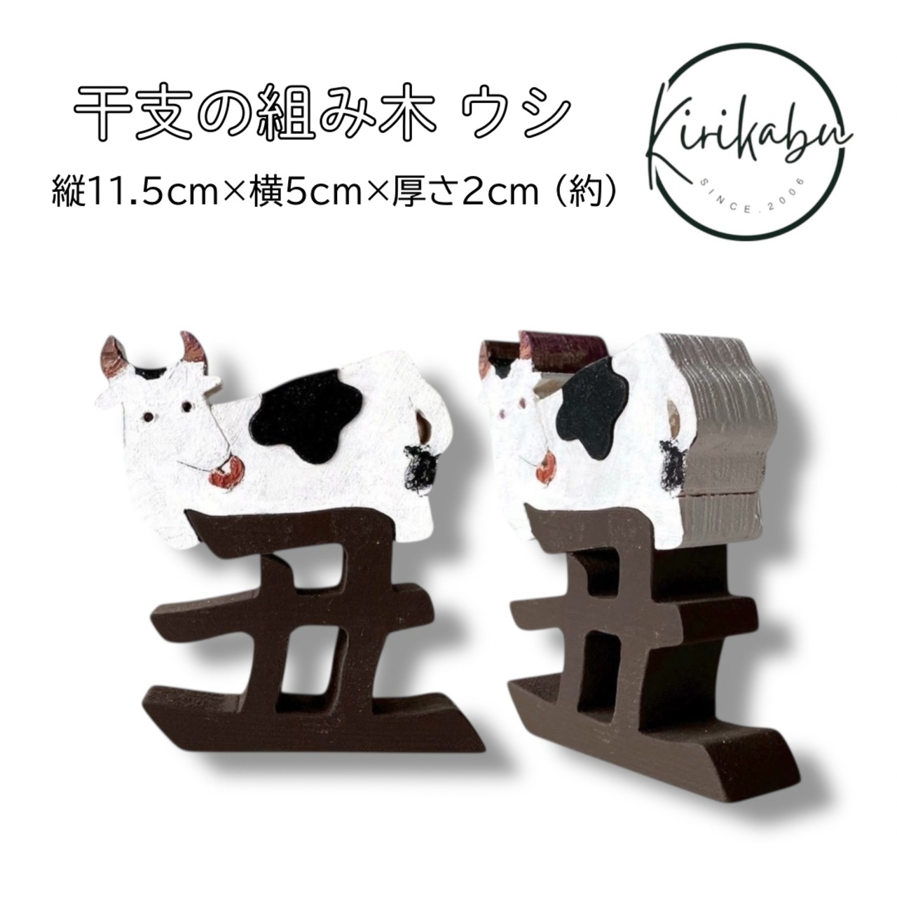 きりかぶオリジナル 干支の組み木(色付き) 丑