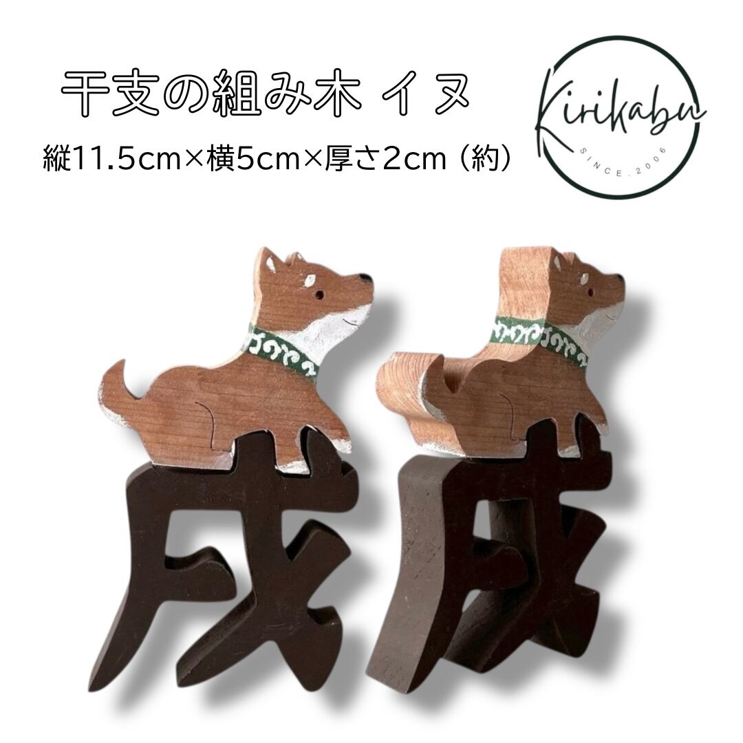 きりかぶオリジナル 干支の組み木(色付き) 戌