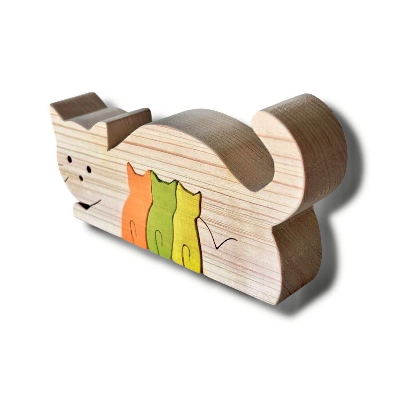 国産ひのきで作ったネコの家族です。