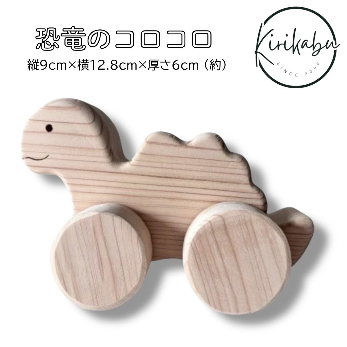 国産ひのきで作った恐竜のコロコロです。