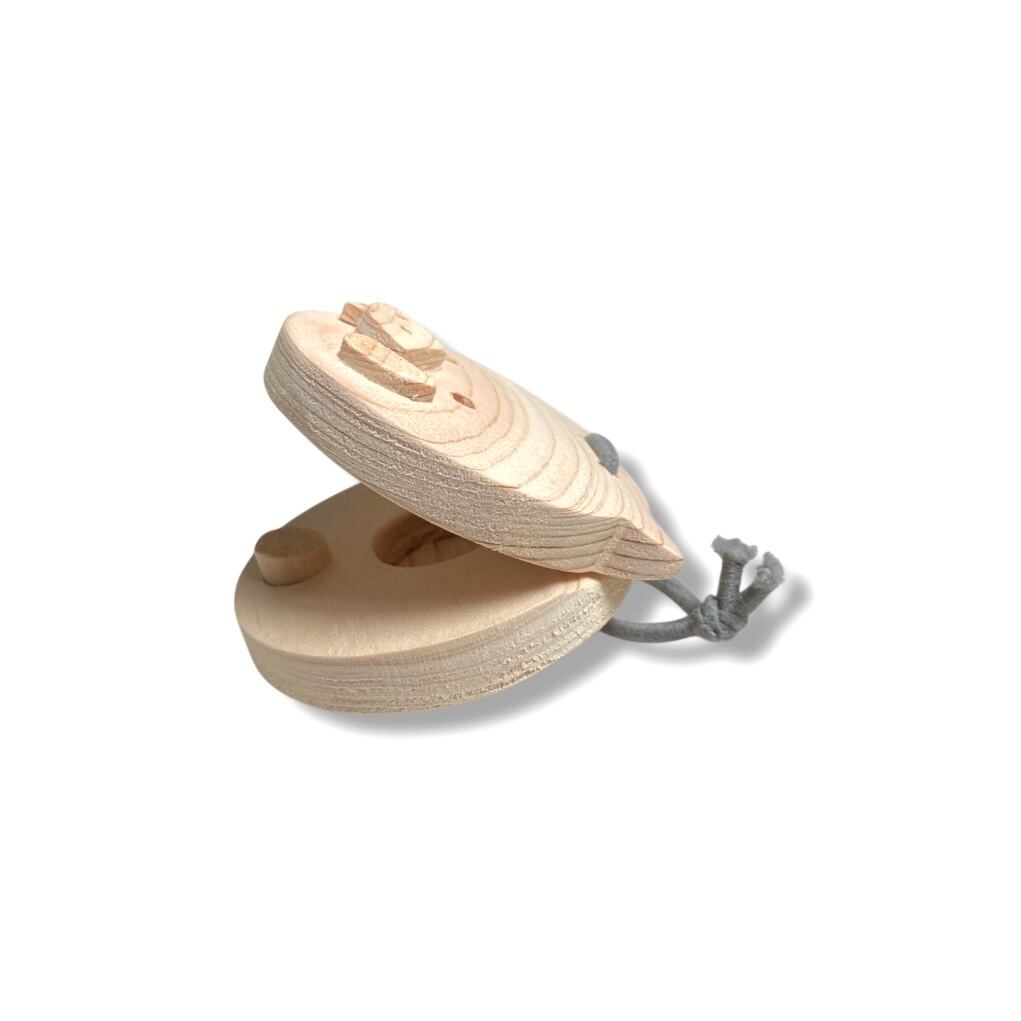 ヒノキのぬくもりある手触りと優しい音色が特徴のカスタネットとなっております♪