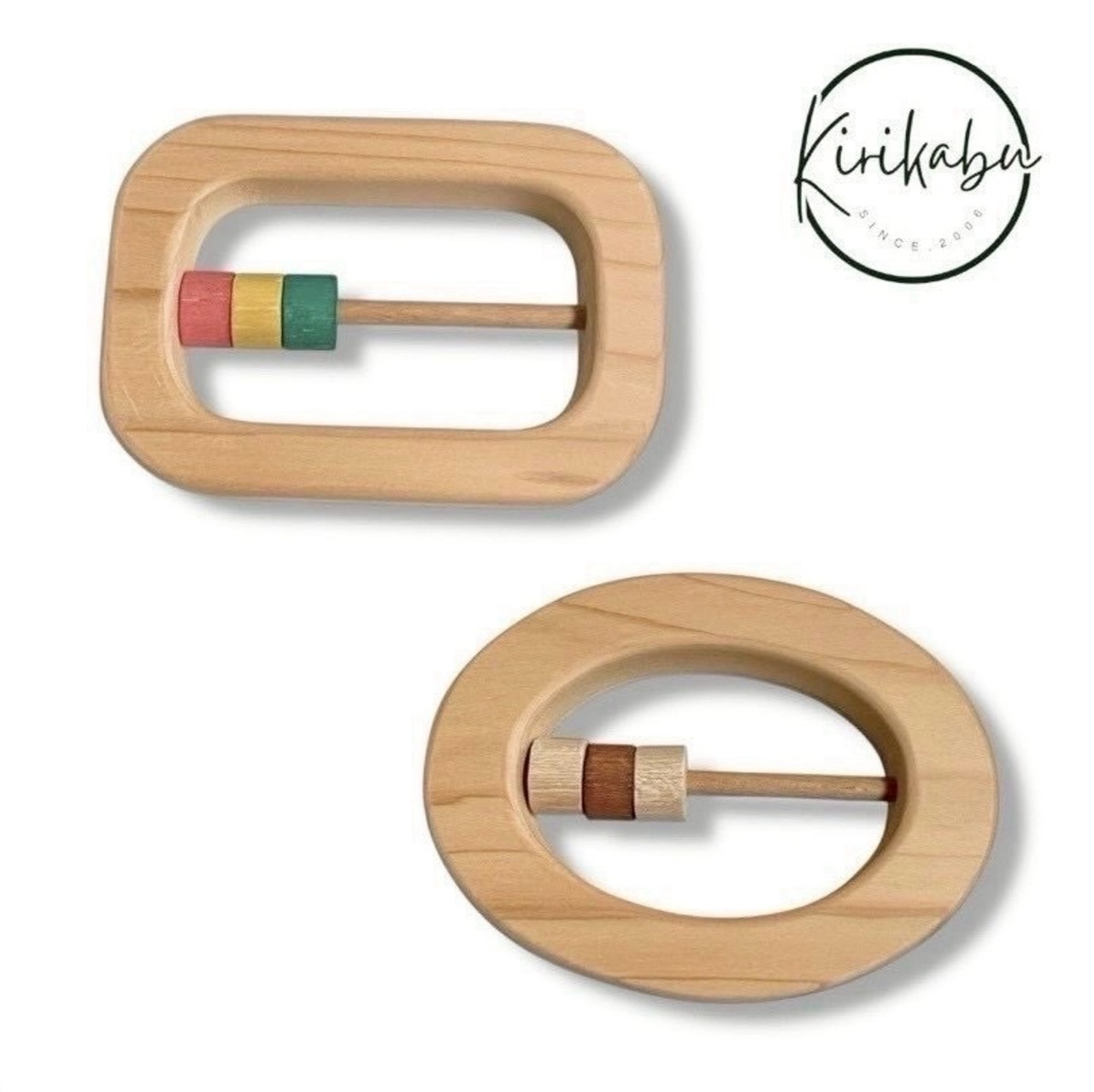 国産ヒノキを使用し、ひとつひとつ丁寧に手作業で仕上げた木製ラトルです。