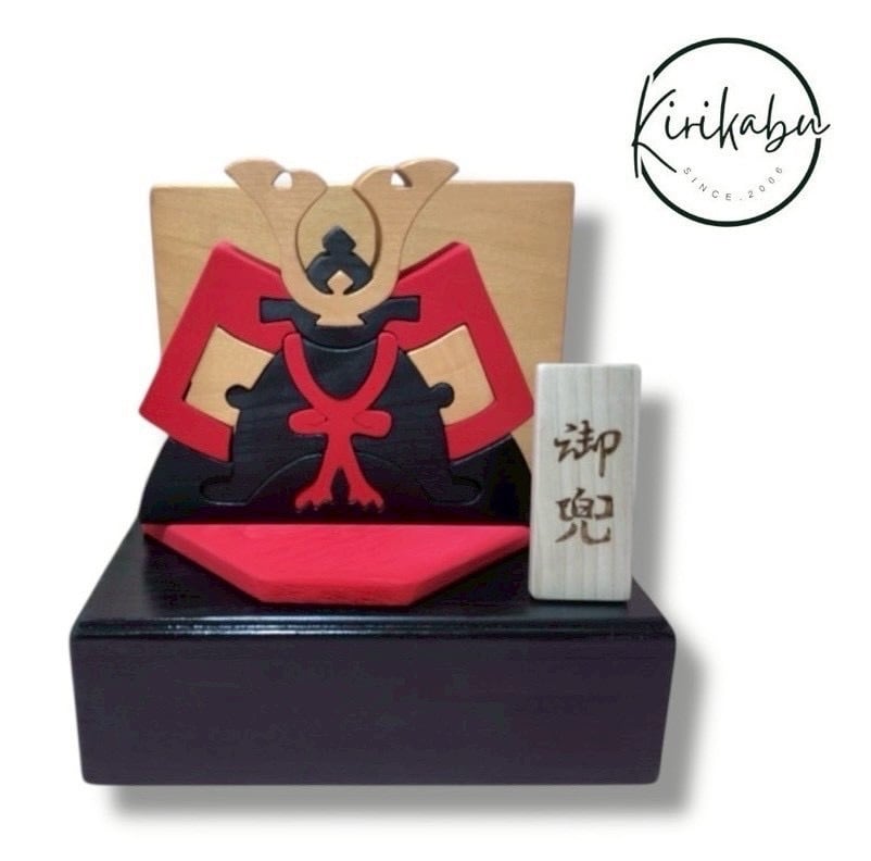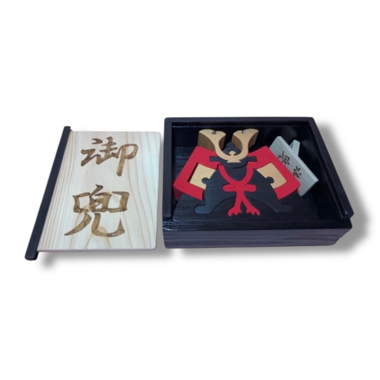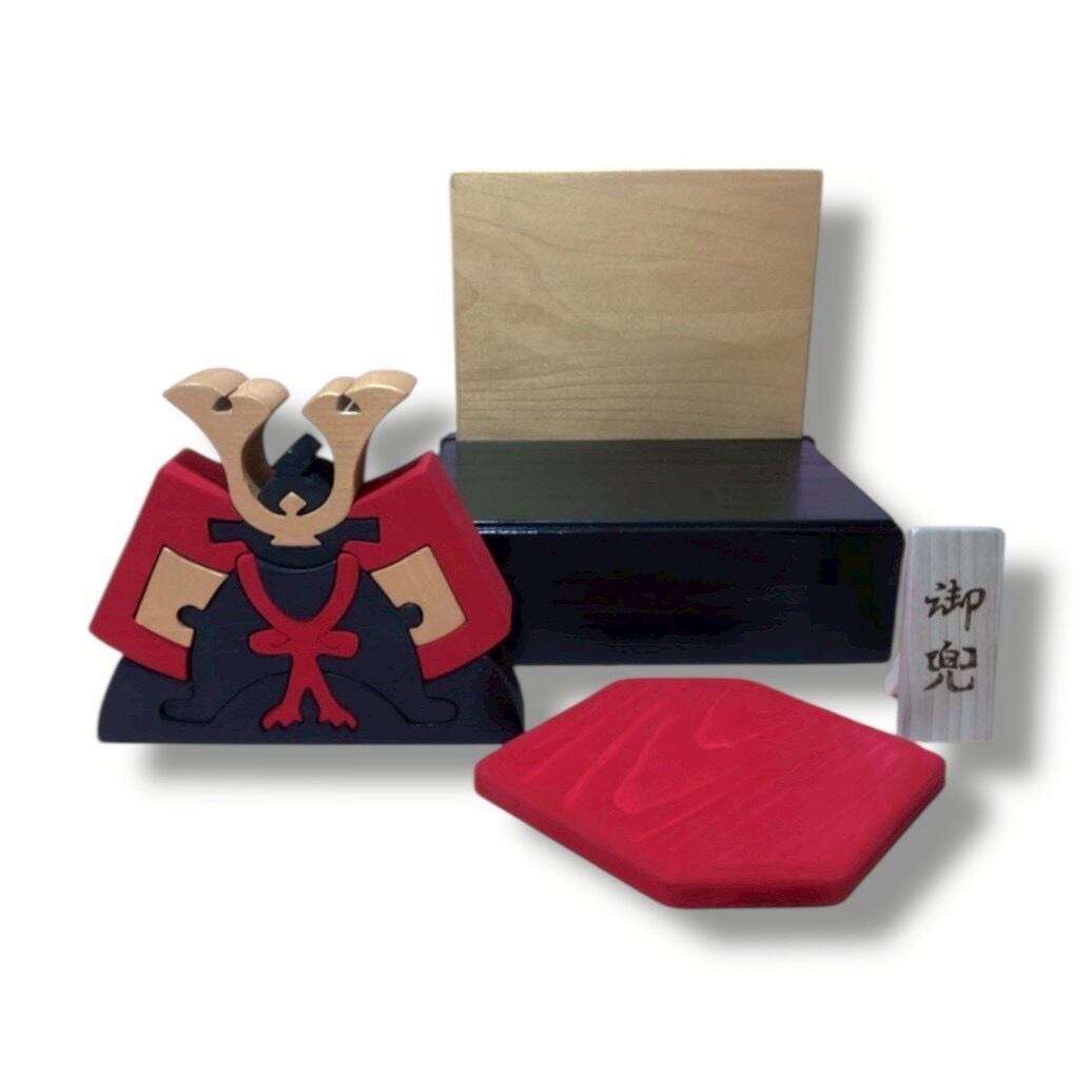 当店で販売している兜の組み木に色付けをし、サイズも少し小さめになっております